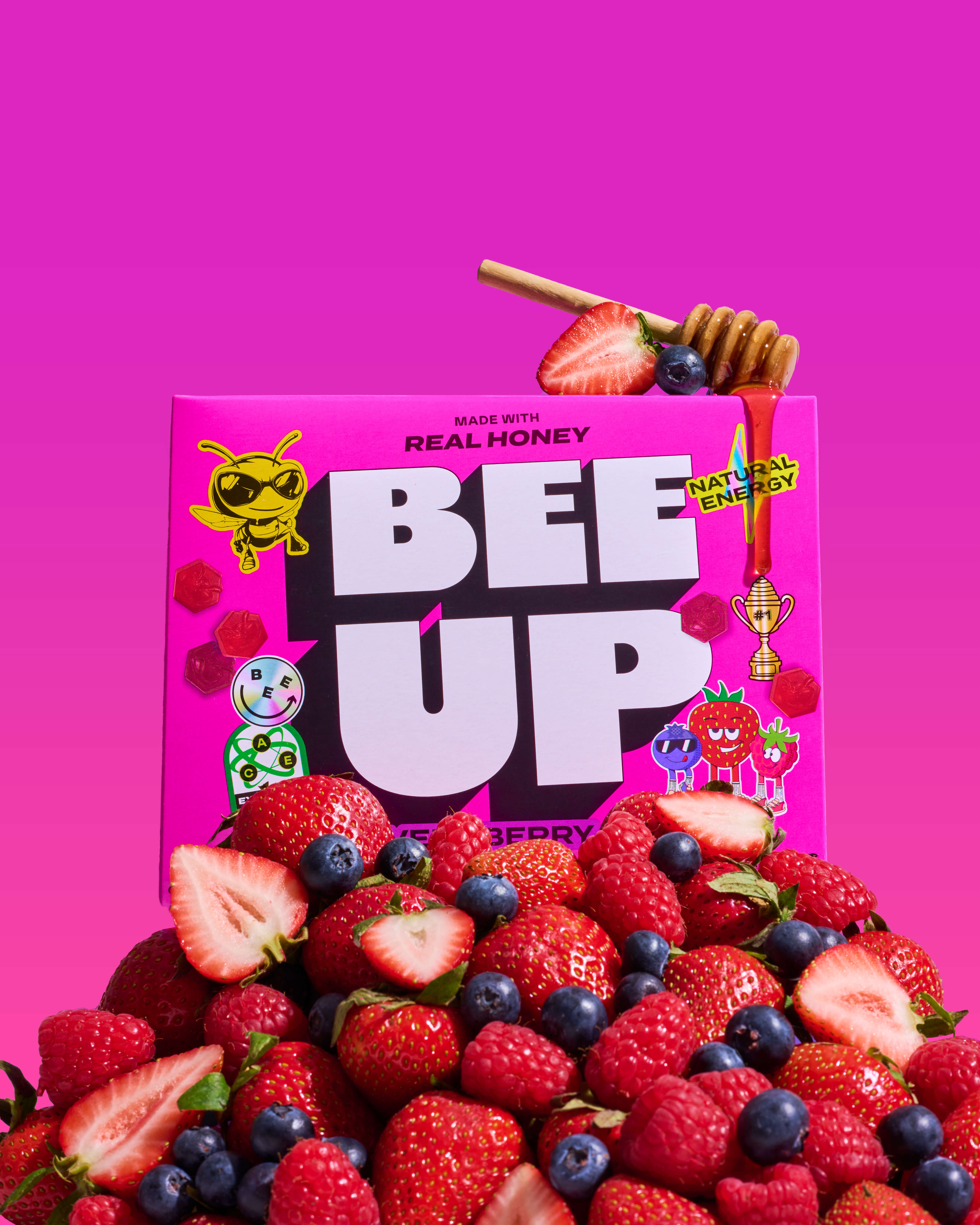 We started in the studio and turned the saturation all the way up. Punchy backdrops. Real fruit everywhere. Honey drizzles thxat actually drip. Macro texture shots that made the gummies look glossy and alive. We didn’t over-style it. We let the stickiness show. Let the color clash a little. Let it feel fun!